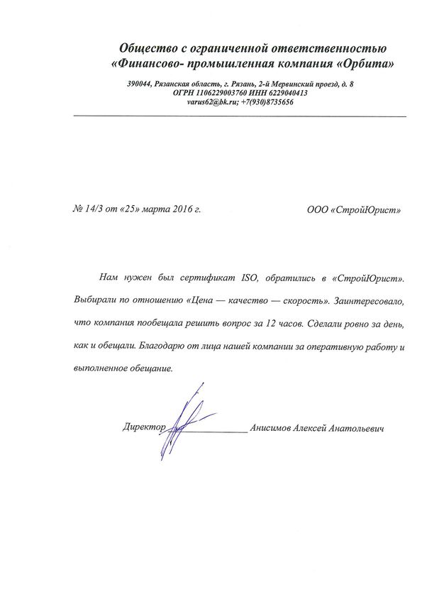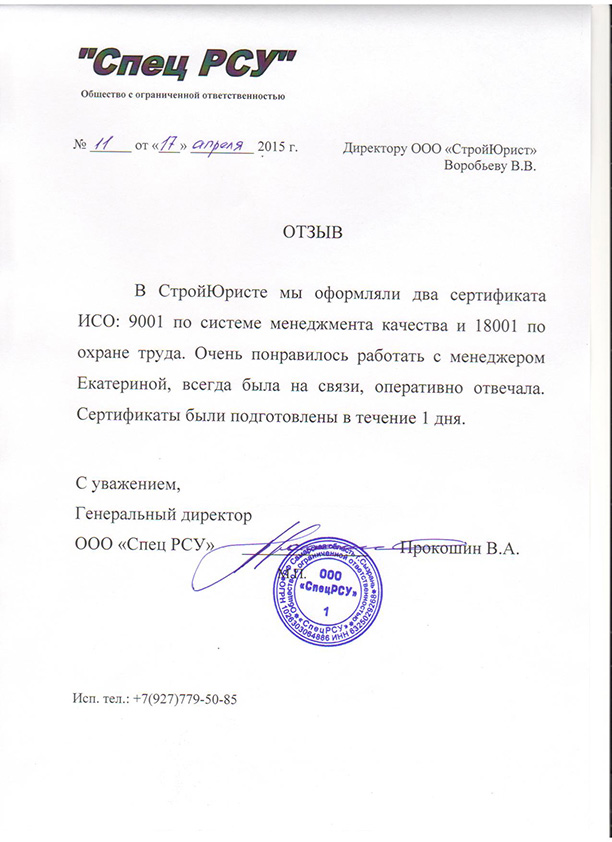 Отзывы клиентов "СтройЮрист" по ISO в Пушкино